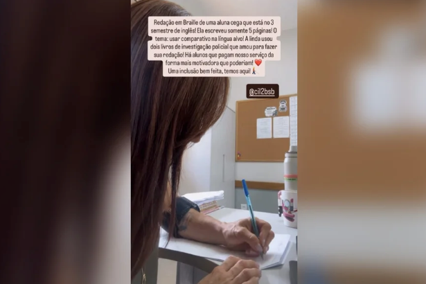 Uma jovem com deficiência visual total virou destaque em Brasília depois de entregar uma redação de inglês escrita inteiramente em Braille — com cinco páginas preenchidas à mão, usando um instrumento chamado reglete. A façanha aconteceu no Centro Interescolar de Línguas (CIL) 02 da Asa Norte, escola pública do Distrito Federal especializada no ensino gratuito de idiomas estrangeiros.